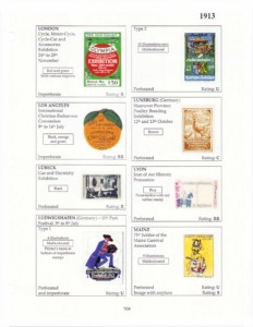 A massive, monumental work by a group of collectors led by Stewart Gardiner, with 1000’s of listings covering dated event stamps up to 1914. Sold as several volumes by period, sorted by year and city location of the event. Stamps are ranked as Common, Uncommon, Scare, Rare or RR. This is the best catalog for dated poster stamps, making several early catalogs obsolete, and is the place to start for event collecting.