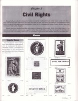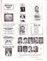 A catalog listing US only cinderellas concerned broadly with politics. All stamps are shown full size or slightly reduced, and 8 pages showing some in color is included. Chapters include candidates, parties, or movements such as civil rights, and also social causes such as “prohibition” or “war and peace”, if the cause might involve voting or legal changes. The period covered is from earliest known (about 1860) until 1998 and time of publication.