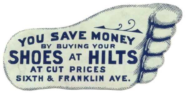 In the US especially, less so in Europe, advertising was adapted to gummed labels, which came to be known as “stickers”. Production was by smaller local print shops. Perforation was expensive and rare, and printing was usually a single color on plain or tinted paper. An attention getter was die-cutting by the printer in custom shapes, giving rise to oval, heart-shaped, scalloped edges, pointing-hand shaped, even foot-shaped stickers.