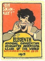 The term Poster Stamp came about because many of these stamps were “poster-like” in their looks or even miniature copies of full size street posters. Colorful artworks, whatever the use or size, were rare around 1900–color printing was costly–so poster stamps caught the public’s attention.3 Because their classification is partly a subjective reaction to the graphics, the boundary lines of what is a poster stamp and what is not are rather fuzzy; the Poster Stamp Collectors Club takes a broader, more inclusive view on this website.